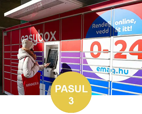- Mergi la easybox, introdu codul PIN sau scanează codul QR de pe mail și deblochează sertarul comenzii tale.